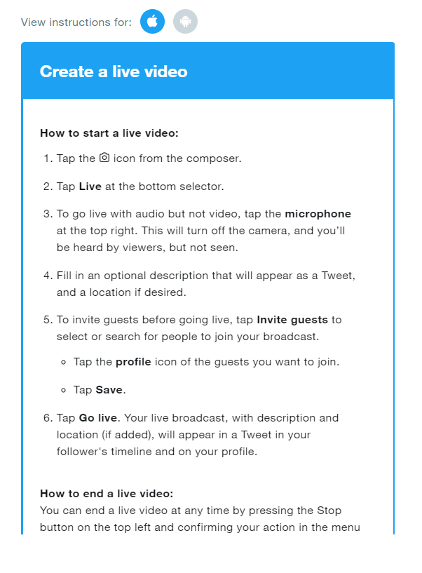 Also, for the day we are releasing the show Martin propose to do a video live stream of the whole the hour magazine where people could be able to interact and leave their comments. This is possible to do it from Twitter, so probably the account created for that would be the best to promote it using also live hashtags while he program is being broadcast. And it gives also the option to call a live guest, something a bit risky but maybe if the coronavirus still being as it is now, the only option to have a live one in the studio. These are the steps we will have to follow if we want to do that: